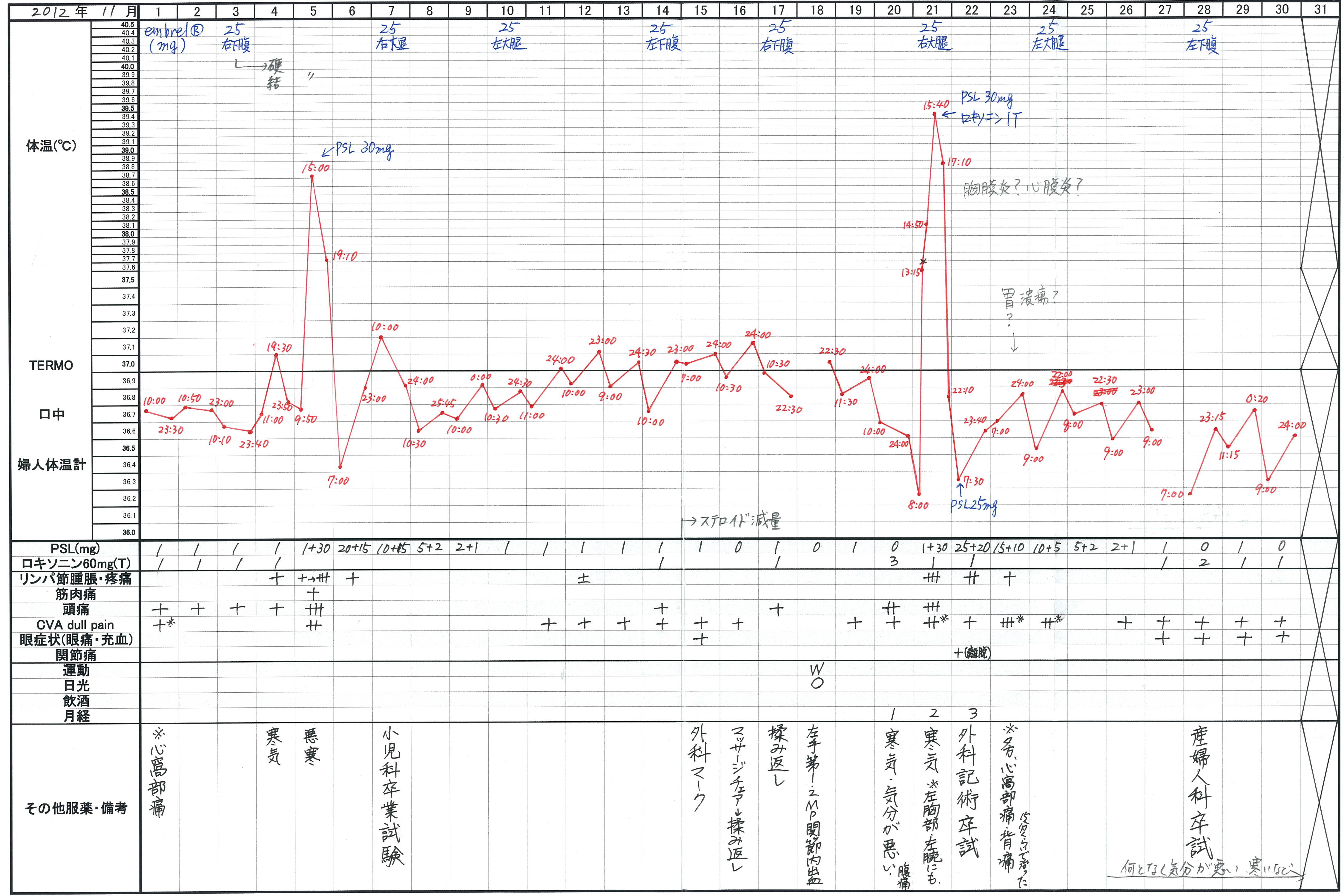 是非とも記録をし、その記録をもとに主治医の先生と検討して今後の対策や治療に活かしてください。